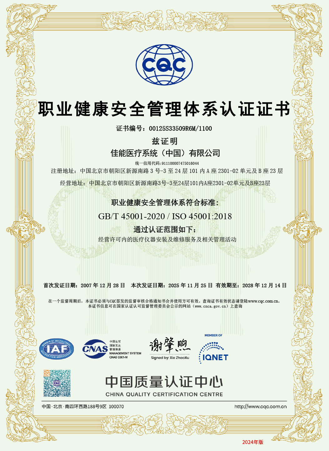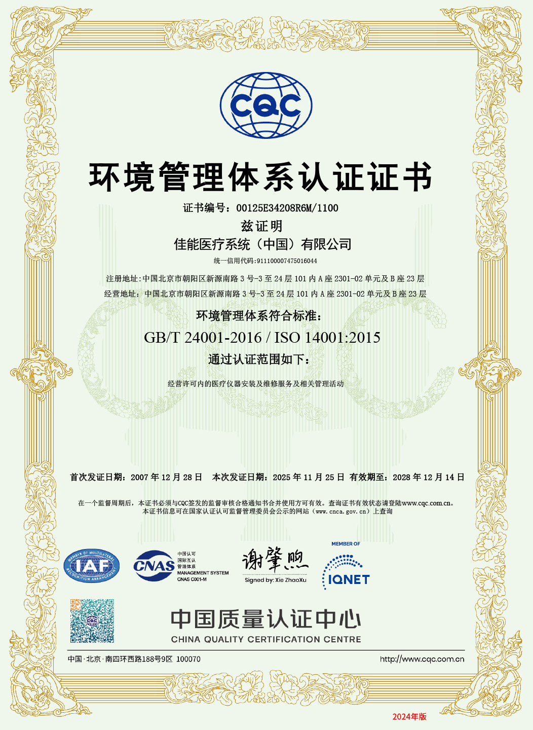 佳能醫療維修部是國內醫療設備業界在安裝、維修領域較早通過中國質量認證中心四標管理體系認證的專業服務機構